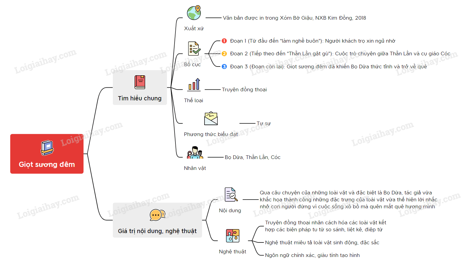 Sơ đồ tư duy về truyện “Giọt sương đêm”: