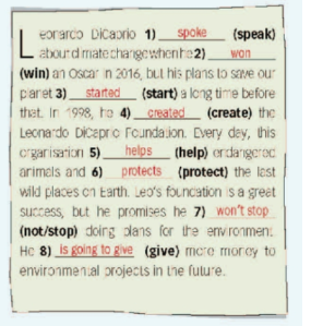 ( Đặt có động từ trong ở dạng đúng của thì.)