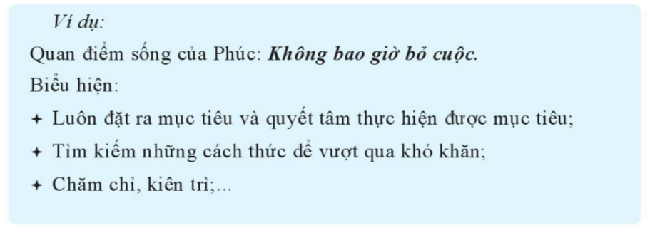 Chia sẻ quan điểm sống của em và những biểu hiện của quan điểm đó.