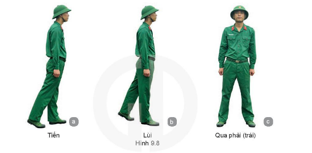 Đọc thông tin, thực hiện động tác tiến, lùi, qua phải, qua trái, theo khẩu lệnh của giáo viên