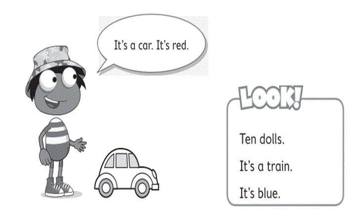 It’s a car. It’s red. (Nó là môt chiếc ô tô. Nó màu đỏ.)