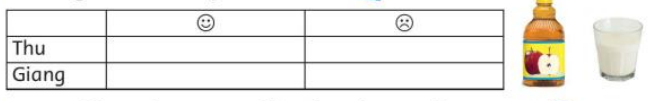 Giang: I like yogurt, too. I don’t like apple juice or ice cream, but I like milk and bananas.