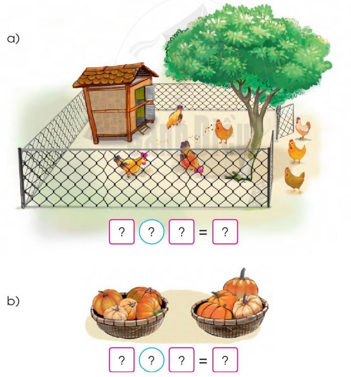 Xem tranh rồi điền phép tính thích hợp vào ô trống.