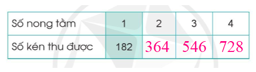 Cô Sao nuôi tằm lấy tơ dệt vải, mỗi nong tằm cô thu được 182 kén. Hãy tính và nêu số kén tằm cô Sao có thể thu được trong các trường hợp sau: