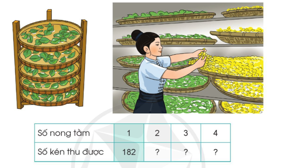 Cô Sao nuôi tằm lấy tơ dệt vải, mỗi nong tằm cô thu được 182 kén. Hãy tính và nêu số kén tằm cô Sao có thể thu được trong các trường hợp sau: