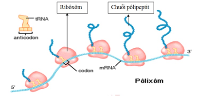 Trong quá trình dịch mã, trên một phân tử mARN đồng thời gắn một nhóm ribôxôm cùng tham gia gọi là pôliribôxôm.