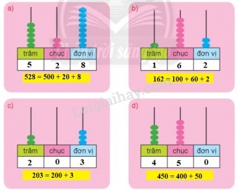 Em quan sát hình vẽ rồi xác định số trăm, số chục, số đơn vị.