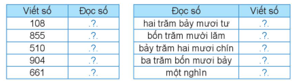 Để đọc số (hoặc viết số) ta đọc (hoặc viết) từ hàng trăm, hàng chục rồi đến hàng đơn vị.