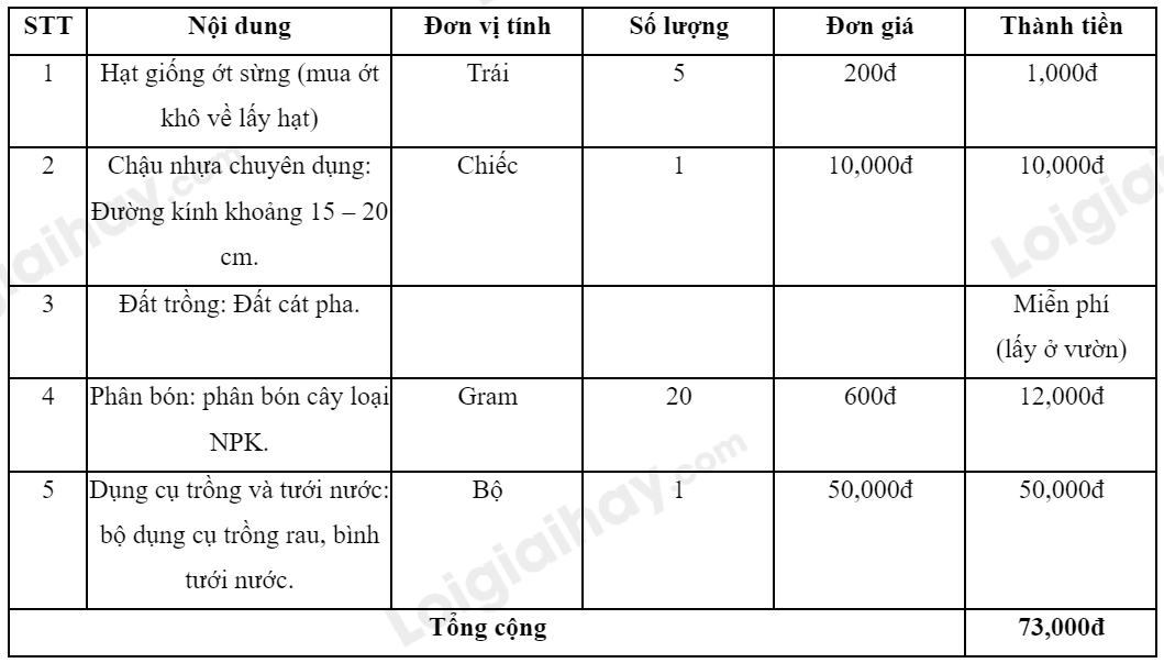 8. Lập kế hoạch và tính toán chi phí trồng một loại cây em yêu thích.