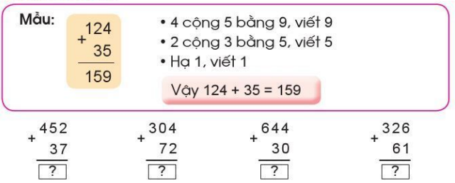 Cộng các chữ số thẳng cột theo thứ tự từ phải sang trái.