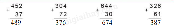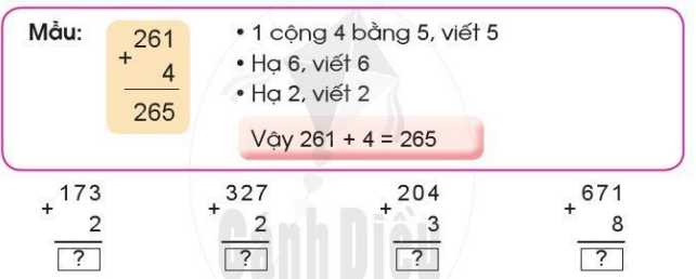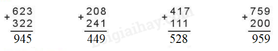Cộng các chữ số thẳng cột theo thứ tự từ phải sang trái.