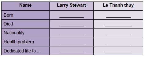 (Đọc những câu chuyện về cuộc đời hai con người và hoàn thành bảng với sự thật về họ.)
