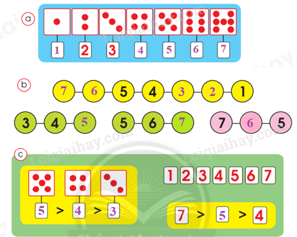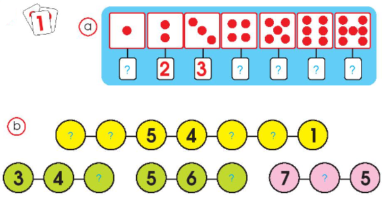 a) Đếm các chấm tròn ở mỗi ô vuông rồi viết số thích hợp.