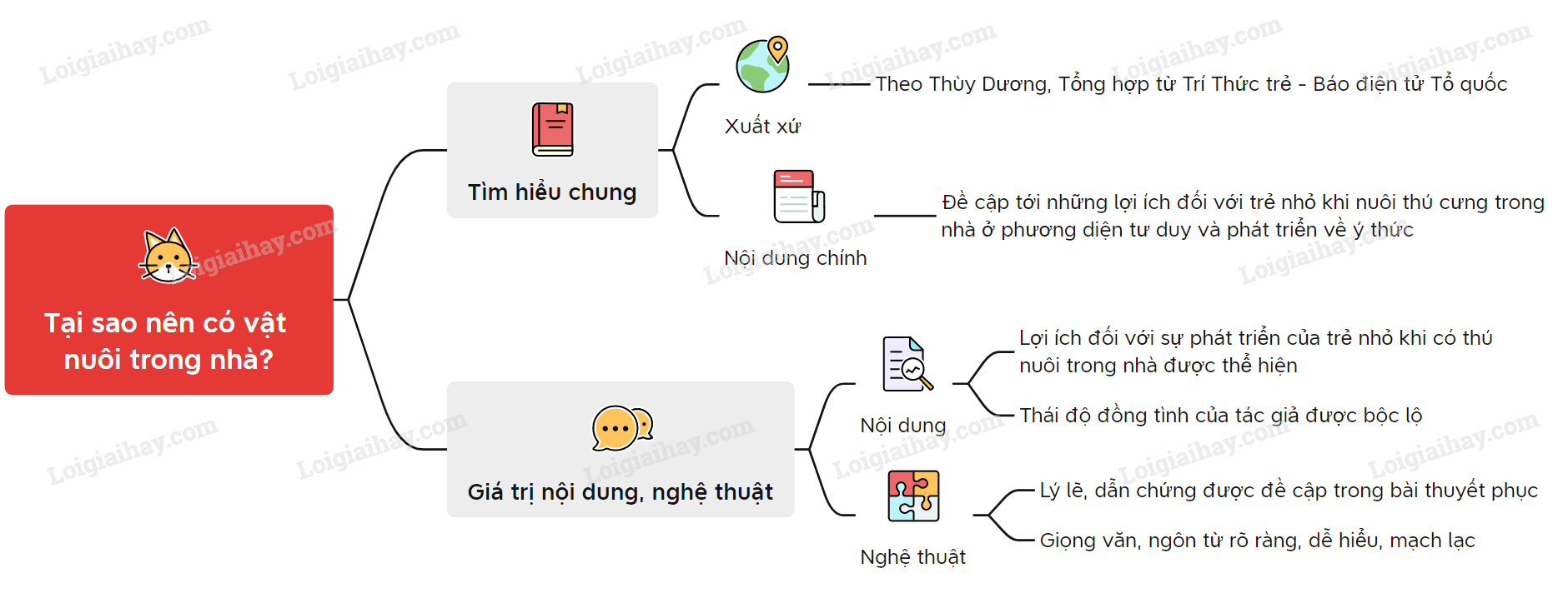 Sơ đồ tư duy văn bản “Tại sao nên có vật nuôi trong nhà?”: