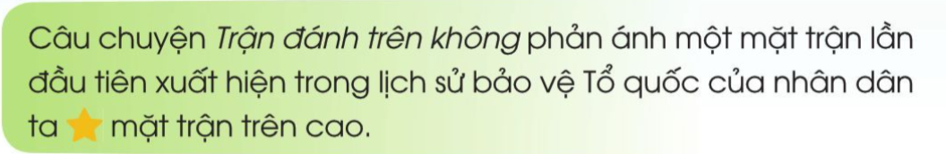 Câu chuyện Trận đánh trên không phản ánh một mặt trận lần đầu tiên xuất hiện trong lịch sử bảo vệ Tổ quốc của nhân dân ta – mặt trận trên cao.