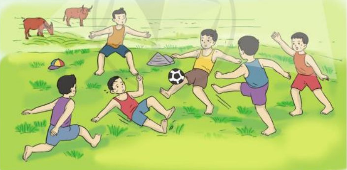 Sân bóng của các bạn nhỏ có gì đặc biệt? Những chi tiết nào cho thấy trận đấu diễn ra rất sôi nổi? Em hiểu thế nào về câu thơ “Đợt phản công gió lốc / Cú đá xoáy Pê-lê”? Khung cảnh đồng quê thanh bình được miêu tả qua những hình ảnh nào?