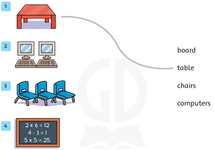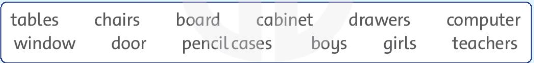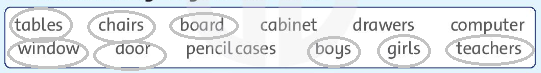 (Khoanh tròn những thứ có trong phòng học của bạn.)