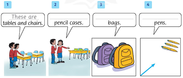 1. These are tables and chairs. (Đây là những chiếc bàn và ghế.)2.