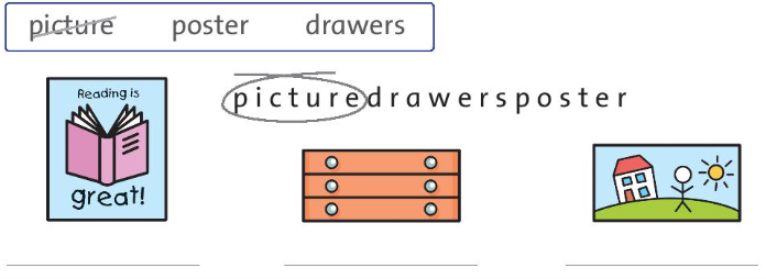 (Nhìn vào bức tranh và các chữ cái. Viết và nói các từ.)