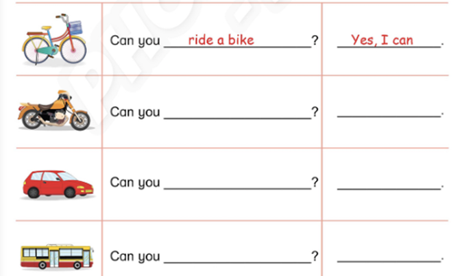 – Can you ride a bike? (Bạn có thể đi xe đạp không?)