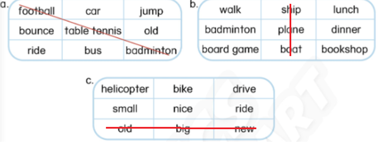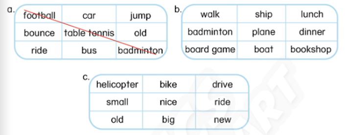 (Tìm ba từ trong một dòng từ cùng một nhóm.)