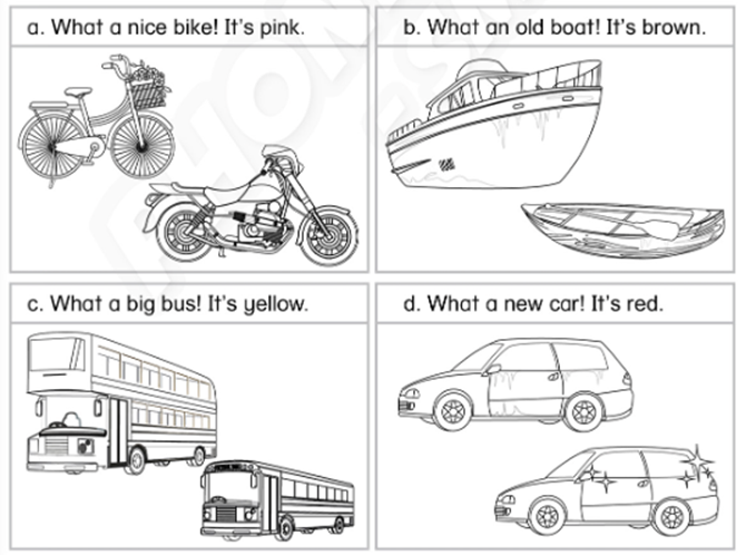 a. What a nice bike! It’s pink. (Thật là một chiếc xe đạp đẹp! Nó màu hồng.)