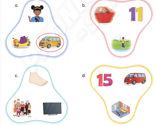 2. Listen and find the odd one out. Circle.