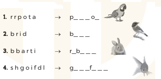Complete and say. Look, write and read. Read and match. Read and circle. Make sentences. Ask and answer. Read and complete. Look and write. Write about your pets.