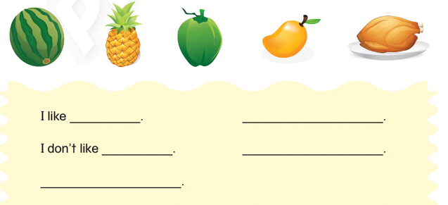 b. I like mangoes. I don’t like meat. (Tôi thích quả xoài. Tôi không thích thịt lợn.)