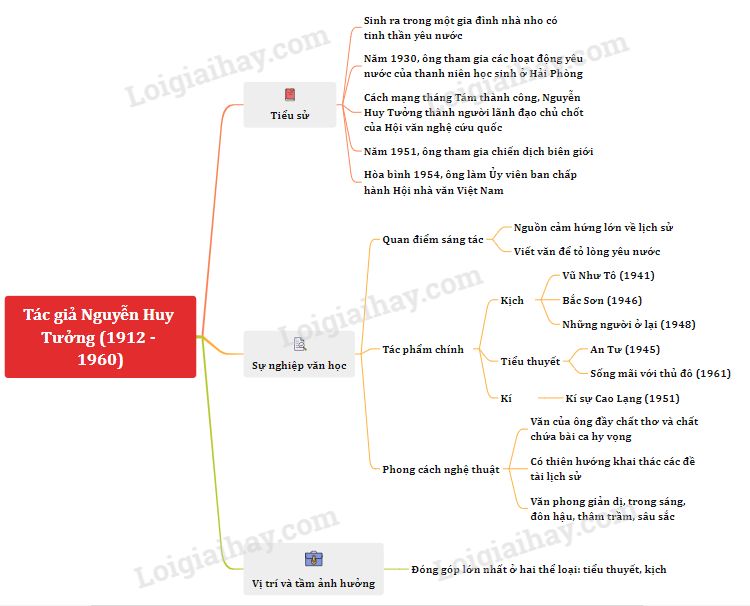 Sơ đồ tư duy Tác giả Nguyễn Huy Tưởng