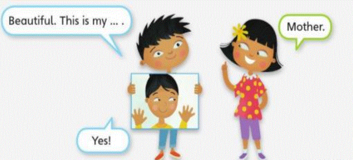 Ví dụ: bạn nam vẽ mẹ của mình và cho gợi ý là từ xinh đẹp “Beautiful. This is my …”. Bạn còn lại sẽ đoán “Mother.”. Trả lời đúng thì bạn vẽ nói “Yes!”, sai thì nói “No!”.