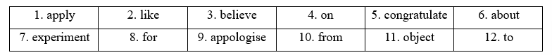 (Hoàn thành các câu với các giới từ và động từ dưới đây.)