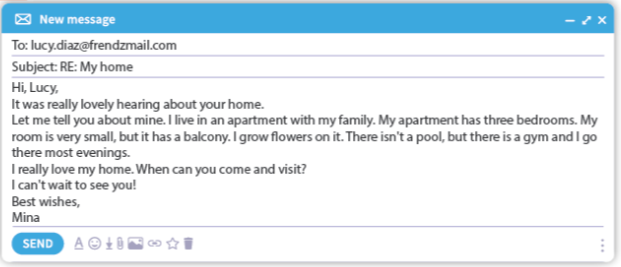 (Đọc lá thư dưới đây về ngôi nhà của Mina.)