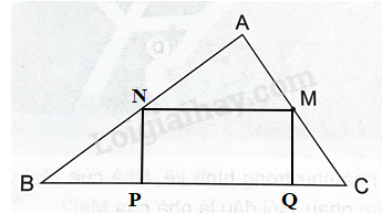 a) Cho tam giác ABC và M là trung điểm của cạnh AC. Qua điểm M, hãy vẽ đoạn thẳng MN song song với cạnh BC (điểm N nằm trên cạnh AB). Qua điểm M, N lần lượt vẽ các đoạn thẳng MQ và NP vuông góc với đoạn thẳng BC (điểm P, Q nằm trên cạnh BC). Ta được hình tứ giác MNPQ là hình chữ nhật.