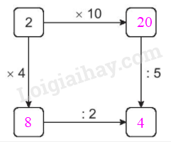 Tính nhẩm kết quả các phép tính theo chiều mũi tên rồi điền số thích hợp vào ô trống.