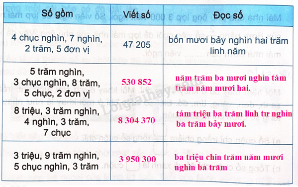 Dựa vào cách đọc số (hoặc viết số) có tới ba chữ số theo từng lớp, lần lượt từ lớp triệu, lớp nghìn, lớp đơn vị.