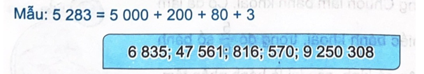 a)  6 835 = 6 000 + 800 + 30 + 5