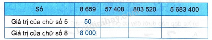 Xác định hàng của chữ số 5 và chữ số 8 trong mỗi số rồi viết giá trị của chữ số đó