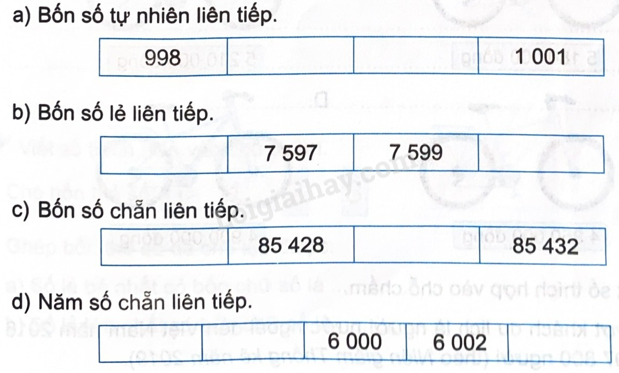 b) Hai số chẵn liên tiếp hơn kém nhau …….. đơn vị.