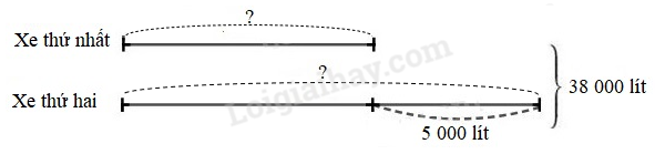 Hai xe bồn chở nước tưới cây, chở tất cả 38 000 $l$ nước. Xe thứ nhất chở ít hơn xe thứ hai 5 000 $l$ nước. Hỏi mỗi xe chở bao nhiêu lít nước?