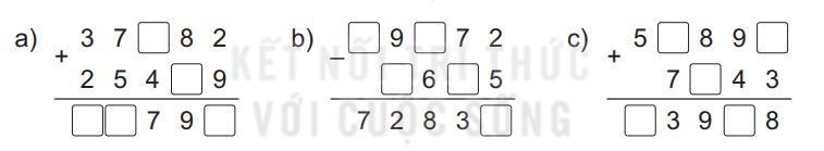 Dựa vào quy tắc đặt tính rồi tính để tìm các chữ số còn thiếu.