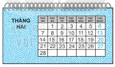Xem tờ lịch tháng 2 rồi viết tiếp vào chỗ trống cho thích hợp.