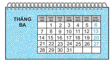 Xem tờ lịch tháng 3 sau đây rồi viết câu trả lời.