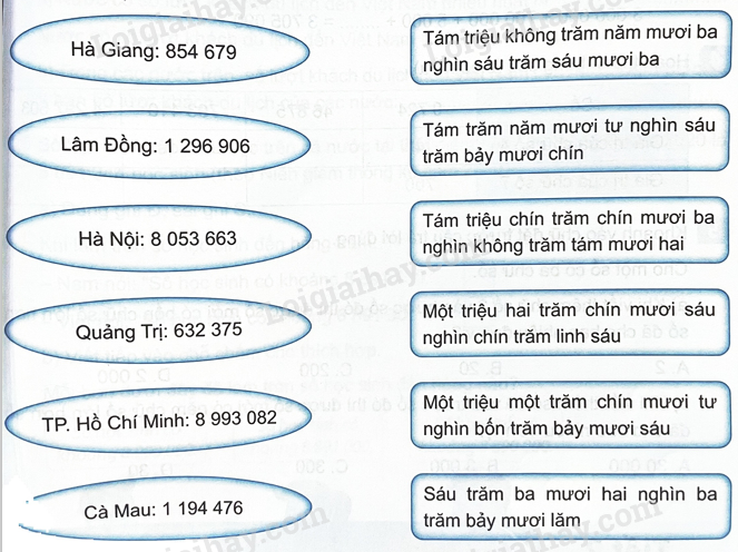 Nối số dân của mỗi tỉnh, thành phố với cách đọc số đó (theo Tổng cục Thống kê năm 2019).