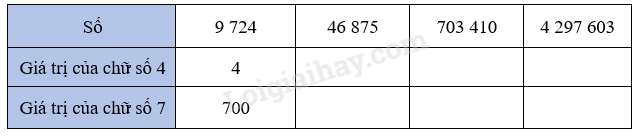Xác định hàng của chữ số 4 và 7 trong mỗi số, từ đó xác định được giá trị của chữ số đó.