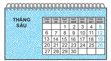 Xem tờ lịch tháng 6 sau đây rồi viết câu trả lời.