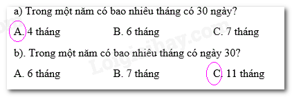 a) Trong một năm có bao nhiêu tháng có 30 ngày?