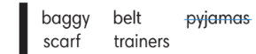(Tôi mặc bộ đồ ngủ kẻ sọc đi ngủ.)