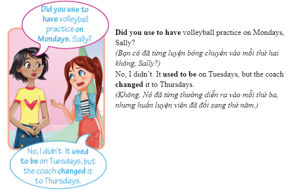 (Chúng ta sử dụng used to để nói về những thứ đã xảy ra một cách thường xuyên trong quá khứ, nhưng lại không còn diễn ra ở hiện tại.)
