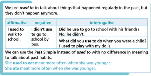 – Sử dụng used to để diễn tả thói quen đã xảy ra trong quá khứ.